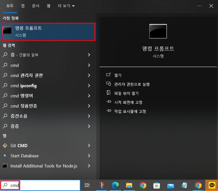 cmd 검색 후 명령 프롬프트 실행해서 자바 버전을 확인